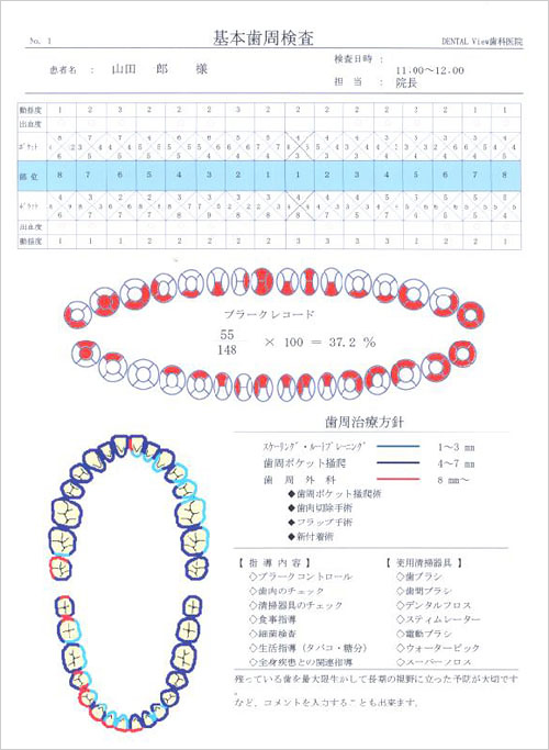 歯周検査の結果とブラッシング指導などの内容をお渡しすることが出来ますので、定期健診時などにも活用できます。